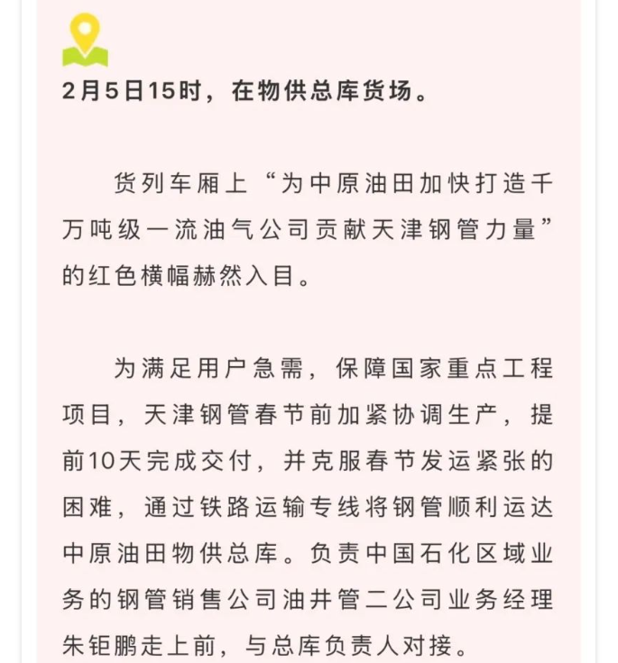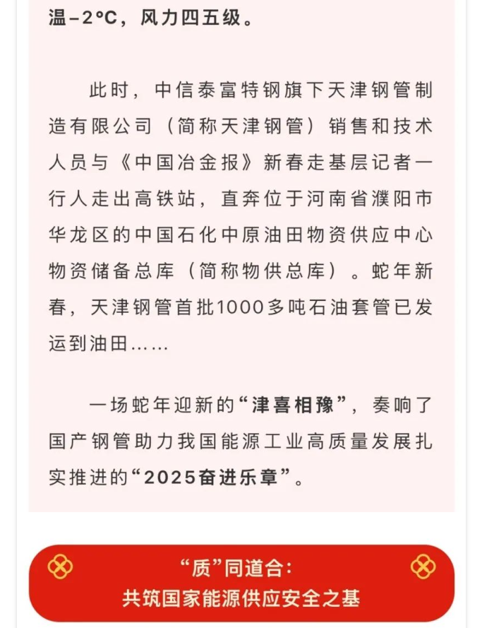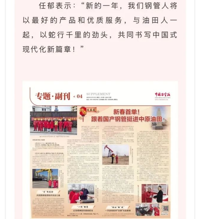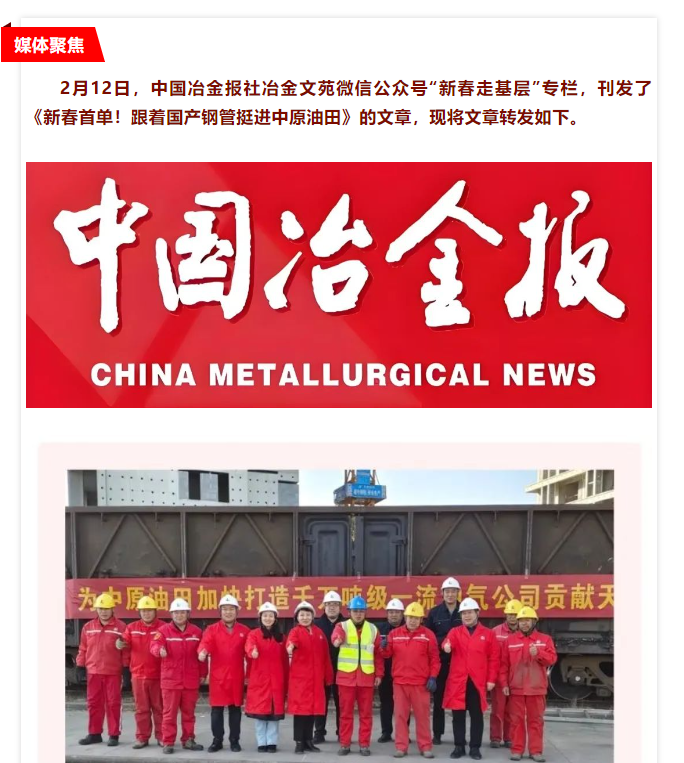 媒体聚焦 | 冶金文苑:新春首单!跟着国产钢管挺进中原油田
